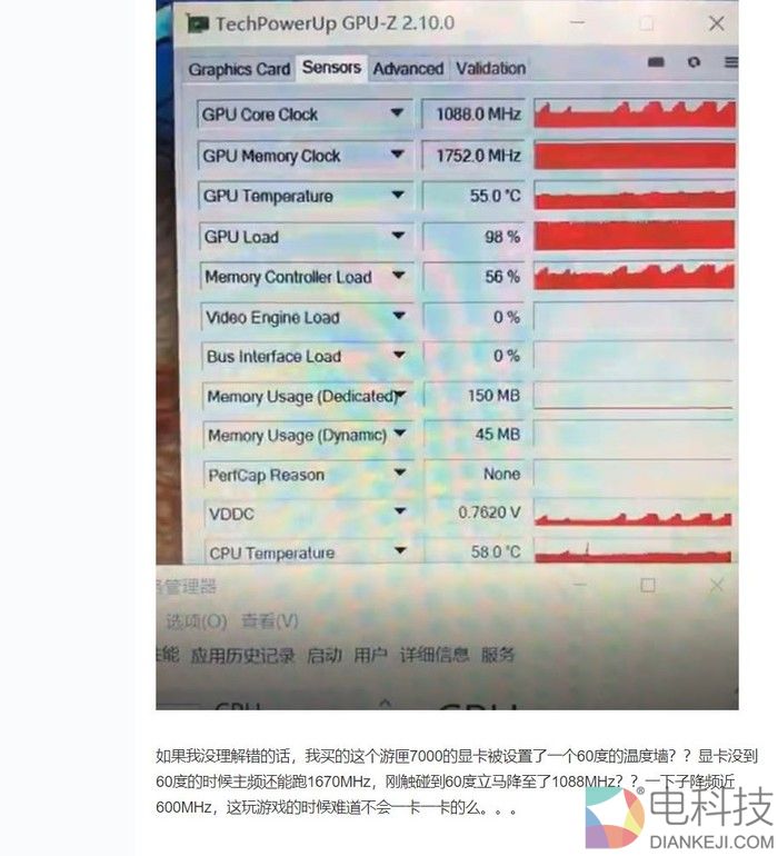 从他“双拷”测试过程的截图来看,似乎戴尔游匣7000 7467游戏本无法把GTX1050的全部性能给发挥出来,因为显卡好像被设定了一个60°的“温度墙”。