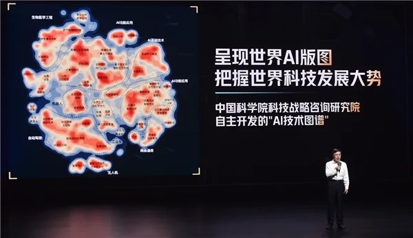 中国科学院科技战略咨询研究院(以下简称战略咨询院)院长潘教峰在科学小会上结合历次工业革命,分析了目前AI技术的发展阶段,并在会上首发由战略咨询院王小梅研究员团队利用AI算法绘制而成的《2023 AI技术图谱》,直观呈现了世界AI版图,分析了我国AI技术发展现状,为把握AI科技发展趋势提供参考。