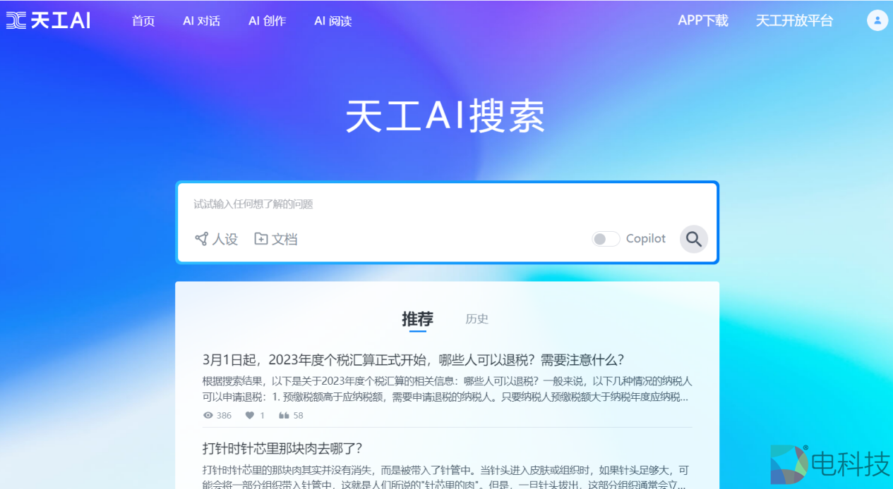 那么为什么要融合AI大语言模型?融合了AI大模型能力后的AI搜索,究竟又强在哪里?从「天工AI」上,其实也可以窥得答案。