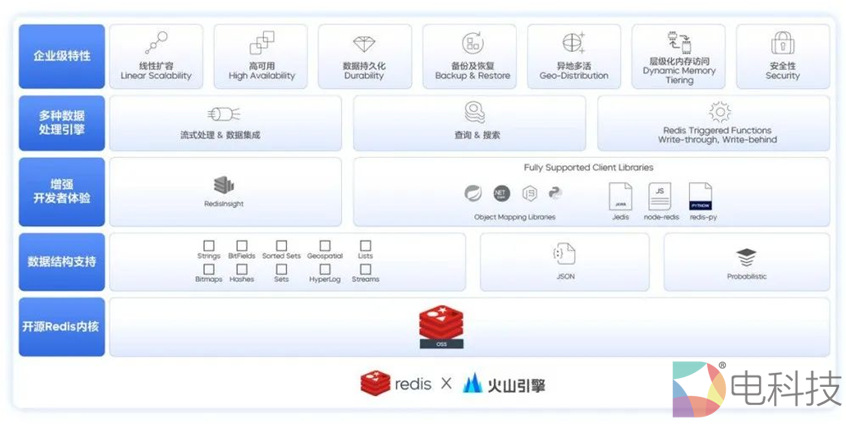 本次合作推出的火山引擎缓存数据库Redis企业版,不仅提供内存向量检索、AI算法内存计算、多模组扩展(Redis Modules)、层级化存储、持久化存储、触发器及函数、流库一体化等高级功能,同时性能和稳定性保障能力均有大幅提升,在应对向量检索、JSON、概率化数据、空间地理信息及时序数据检索和自定义函数方面更具优势。产品具备五大核心特性: