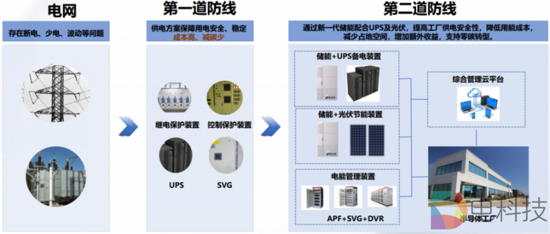 为解决电能质量问题,半导体行业通常采用继电保护与控制保护作为第一道防线。极光云能发挥储能产品及云平台控制优势,为半导体行业打造了电力供应的“第二道安全防线”。