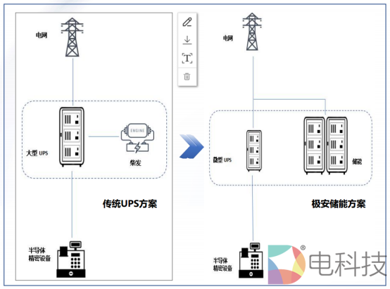 经济性是客户在选择储能系统时的关键考虑因素之一。过去,半导体等制造业采用UPS+柴油发电机的备电方案,其综合成本高达10元/Wh,而且柴油发电机还需要进行每月1次的预防性维护,衍生出更多人工和运维成本。