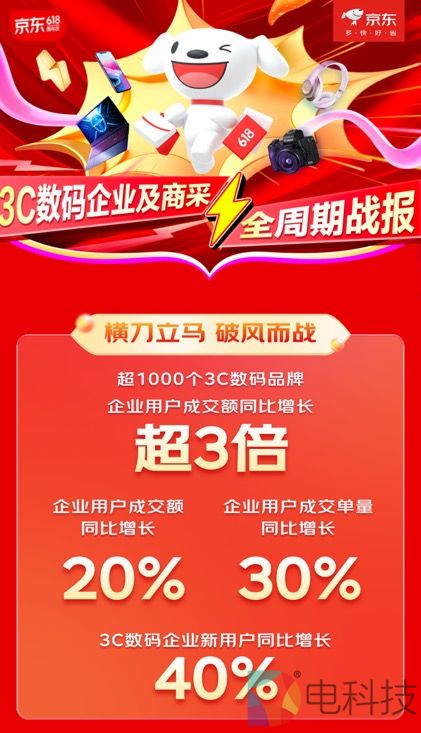 随着6月18日24点的到来,今年京东618完美收官。凭借“又便宜又好”的购物体验,本次京东618不仅点燃了普通消费者购物热情,也为企业客户打造了一场采购盛宴,京东3C数码企业及商采战绩再创新高。其中,超1000个3C数码品牌企业用户成交额同比增长超3倍;3C数码企业用户成交额同比增长20%;3C数码企业用户成交单量同比增长30%;3C数码企业新用户同比增长40%;办公文具、拓展卡等品类销售纪录不断刷新,迎来了全面增长。