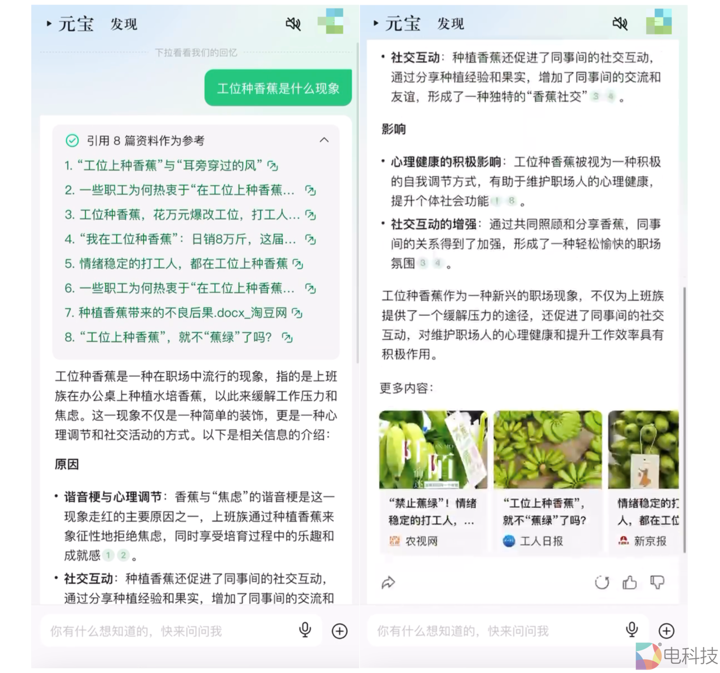 值得一提的是,腾讯元宝通过AI搜索增强,接入了微信搜索、搜狗搜索等搜索引擎,不仅覆盖了微信公众号等腾讯生态内容,还囊括了其他互联网的权威信源。在快速检索信息的基础上,腾讯元宝能够识别出与用户提问高度相关的内容,并进行精炼总结,为用户提供更加优质的搜索结果和延伸阅读体验。