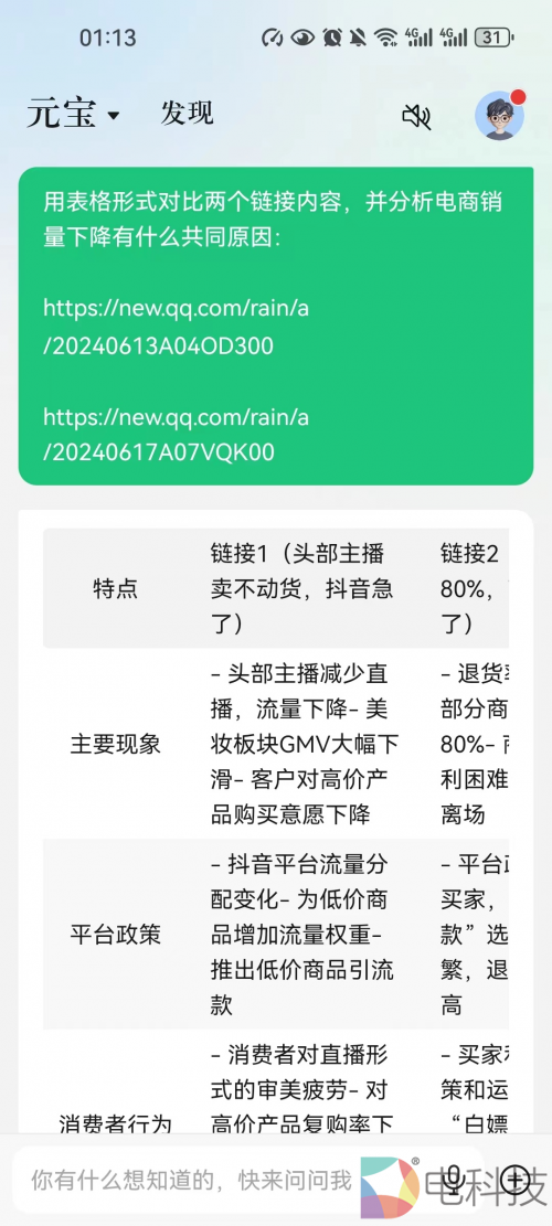 不仅如此,它还能解析URL网址和各类链接,并对多个链接内容进行总结与对比分析。同时,腾讯元宝增加了对png、jpg、jpeg、webp、bmp 和heic等多种图片格式的识别解析。凭借强大的AI理解和生成能力,腾讯元宝可协助用户高效完成信息检索、问题解答、决策制定、数据分析及编程调试等多项任务。