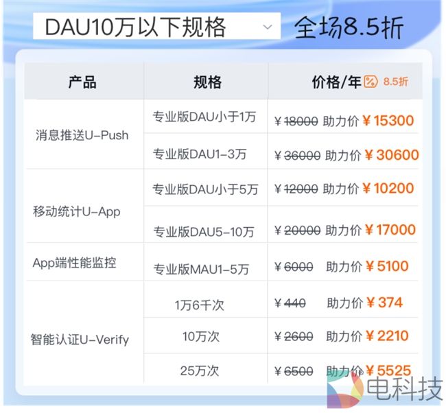 针对以往最适合、最实用、最符合中小微企业的产品和服务推出特惠助力折扣,全部助力产品享8.5折优惠,不限新老用户。友盟+以普惠价格帮助企业实现成本的有效控制和效率的最大化。