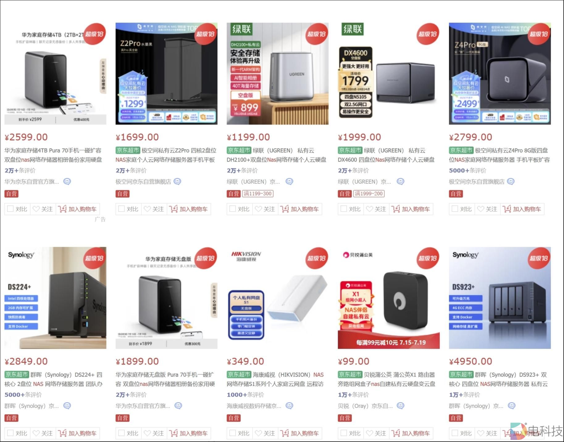 而家庭NAS的价格门槛则更高一些,往往入门级的主机本身价格就达到了1000元以上,加上添置硬盘的费用,基本上搭建一台基础规格的NAS产品最终的成本在20000-3000元。