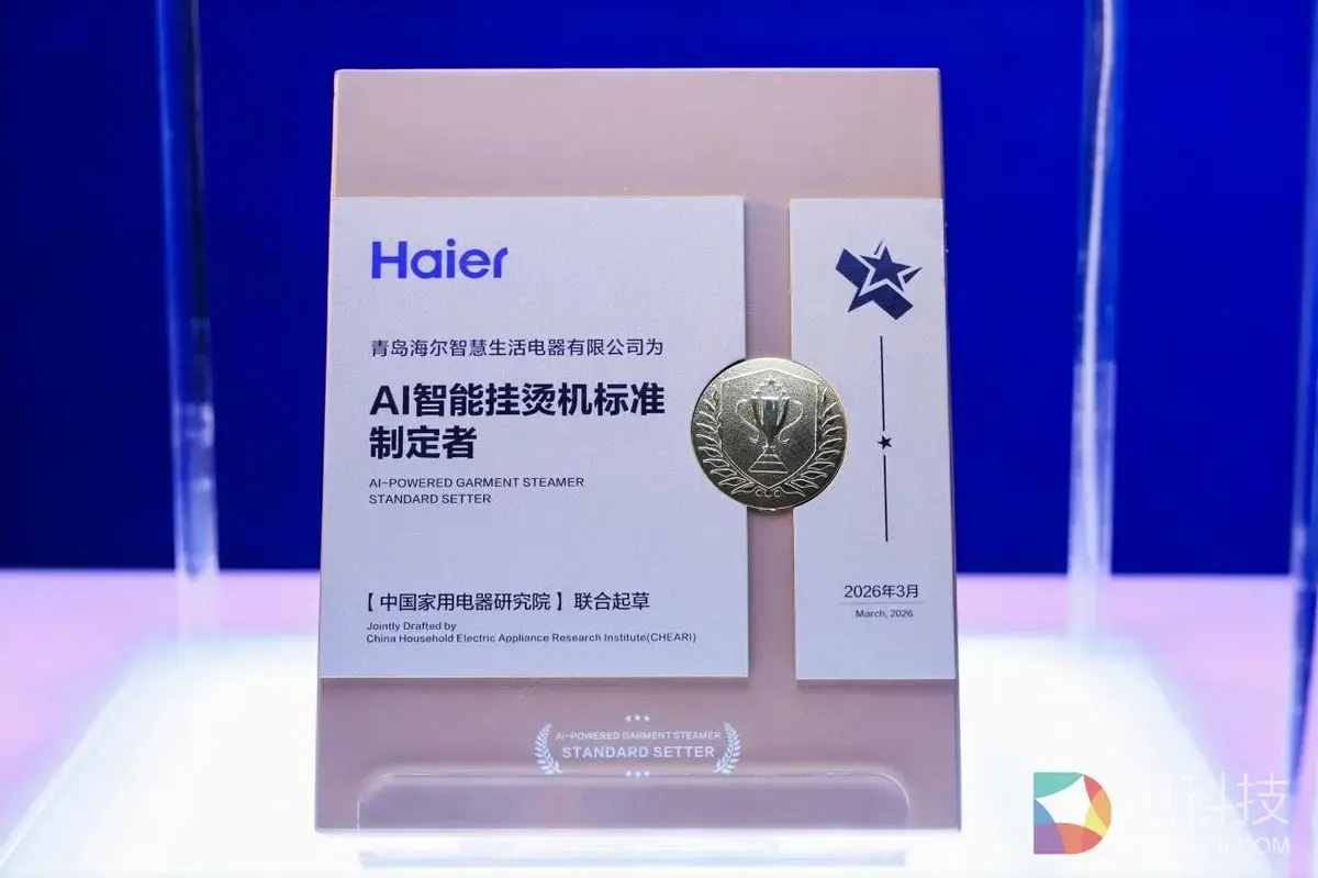 3月13日,上海新国际博览中心,在2026年中国家电及消费电子博览会(AWE)上,海尔小家电举办了“AI智蕴,重写家生活”AI智能挂烫机标准制定发布会。会上,海尔小家电联合中国家电研究院共同发布了AI智能挂烫机标准,并分享了在AI时代如何通过底层技术创新,重塑用户生活的智能交互体验。