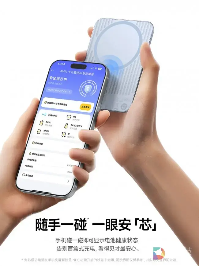 长期以来,行业安全竞争停留在“满足标准”的应试思维,安全是“成本项”而非“价值项”。但倍思以航天级认证打破这一困局:将安全从“达标合规”升级为“核心竞争力”,把航天精神中的严谨、极致、可靠,融入产品全链路研发。以倍思卡片磁吸 Air 为例,其安全革新绝非单点强化,而是全维度系统升级:电芯层面:采用新一代固液混合电芯,通过严苛的针刺、高温滥用等测试;结构层面:搭载铝合金机身与防火玻纤面板,搭配冰川温控矩阵,控温表现比国标低10℃;技术层面:首创NFC安芯碰技术,让电芯温度、循环次数、健康度等数据可视化,安全从“不可感知”变为“可监测、可信任”;体验层面:机身薄至6.9mm,兼顾极致安全与便携无感,破解“安全与轻薄不可兼得”的行业难题。