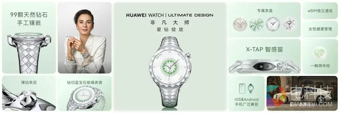 华为携手国际著名珠宝设计师Francesca Amfitheatrof,以春天为设计灵感打造华为首款珠宝智能腕表——HUAWEI WATCH ULTIMATE DESIGN非凡大师 星钻绽放。