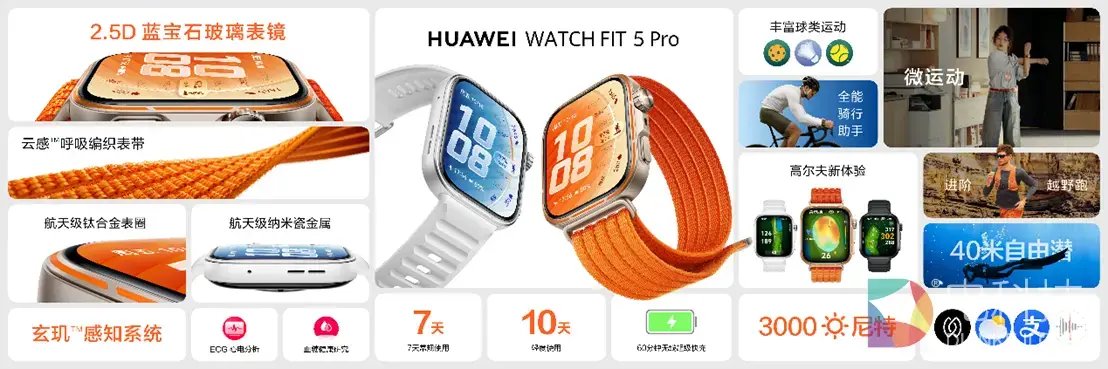 HUAWEI WATCH FIT 5系列带来华为在其智能穿戴设备上首发的“微运动”功能,为久坐忙碌、缺乏运动时间的用户提供全新的运动方式。HUAWEI WATCH FIT 5 Pro还支持越野跑、高尔夫等多项专业户外运动;根据华为实验室数据,全系列轻度使用场景续航可长达10天,缓解用户电量焦虑。目前数字款HUAWEI WATCH FIT 5已开启预售,4月29日开售,售价1099元起,国补后到手价935元起;HUAWEI WATCH FIT 5 Pro 4月29日开启预售,5月15日正式开售,售价2099元起,国补后到手价1785元起。
