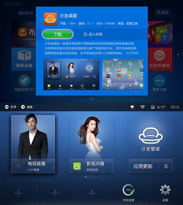 安装完成后,通过“沙发管家”下载并安装“沙发桌面”。