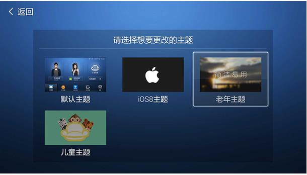 在主题界面选择上可以看到有三个主题,分别是“默认、iOS8主题和老年主题”,选中“老年主题”即可。