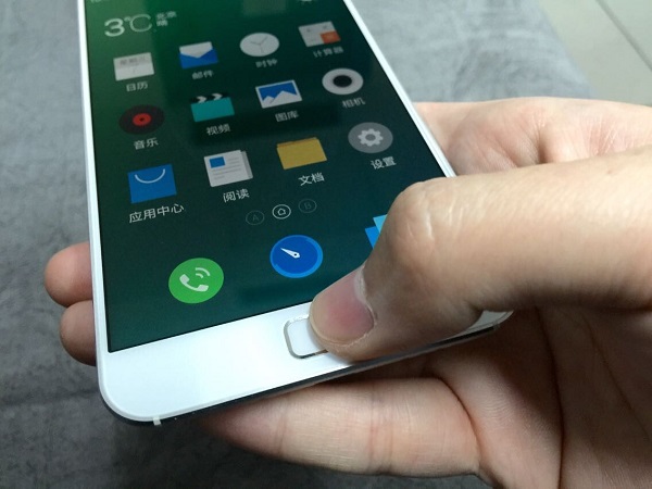 就像许多MX4 Pro的体验者描述的那样,魅族MX4 Pro的指纹识别出奇的快,由于没有苹果iOS系统上过多的解锁动画,魅族MX4 Pro指纹解锁的直观感觉确实比iPhone还要快,而实体HOME键对指纹的识别效率也十分优秀,比如将手指放在图中所示的HOME键一半的位置,也能顺利开启并解锁手机屏幕。