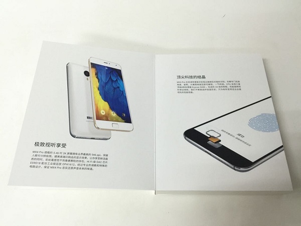 打开书页式的包装层,魅族MX4 Pro最抢眼的两大功能,Hi-Fi音效和指纹识别出现在了显著位置。虽然Hi-Fi音效能在听觉上带来多大改观我们无法用文字直观描述,但指纹识别好不好用我们之后还是能够详细体验一番的。