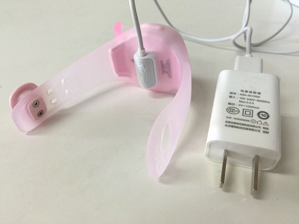 “糖猫”儿童智能手表的充电器规格为5V/1A,与手表接触的充电头为磁吸式设计,不同于常见的MicroUSB接口,使用过程中如果遗失会比较难配到。