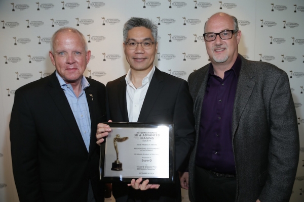 2014年9月,超多维获得I3DS“年度最佳3D移动产品大奖”,超多维总裁许培桢(中间)代表超多维领奖(左一I3DS总裁Jim Chabin,右一为I3DS主席Mike DeValue)