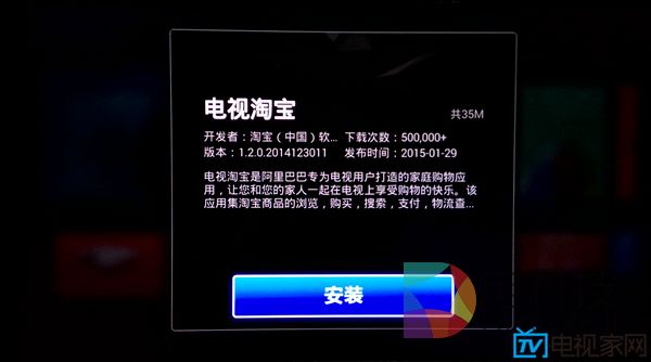 第一次使用需要安装淘宝TV客户端,大小为30多M,安装时间视网速而定
