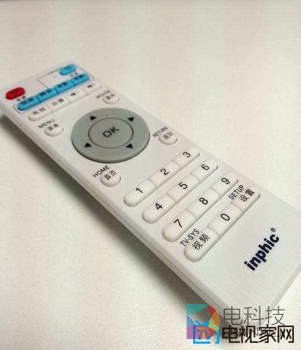 标配的遥控器。与小米简洁的思路不同,英菲克更倾向于传统机顶盒的遥控器设计,并且也能够学习电视遥控器的指令,使用一个遥控器就可以操作电视与盒子两台设备,不必在两个遥控器之间来回切换。这样做的好处是让大部分用户都能够快速的上手,尤其是年龄偏大的人群,不过问题也显而易见,那就是看上去过于复杂。这里重点说一下数字键盘,在输入框中使用遥控器中的数字键盘目前是可以直接输入数字的,在一些