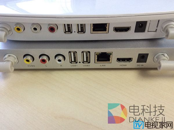 二者在接口方面没有差别,都是1个HDMI视频输出、2个USB2.0、复合视频输出、左右声道输出、1个Reset按钮、1个网线接口以及电源接口,左右两侧有两条萌萌哒小天线。