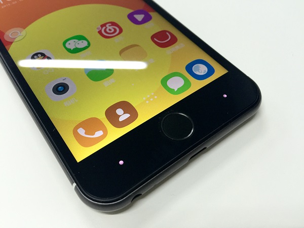 大可乐3的正面真的与iPhone 6相似度99%,和苹果Touch ID几乎完全一样的HOME键在这里并不支持指纹识别功能,另外,大可乐3正面搭载的的是苹果都没用上的蓝宝石玻璃。