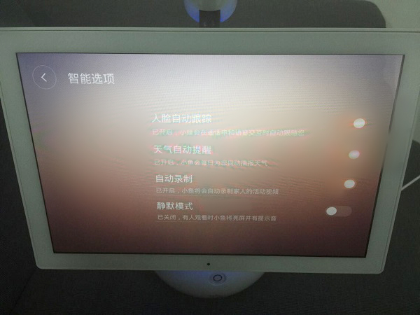 没错,小鱼在家主机的屏幕是可以自主旋转的,我们在系统的设置选项中也能看到其支持人脸自动跟踪功能,真是想不被看到都难。