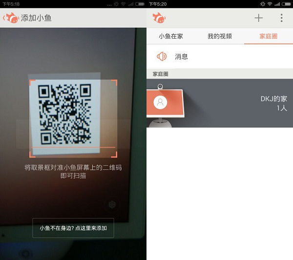 小鱼在家需要配合手机端App已实现视频功能,通过扫描二维码下载后需要利用手机号进行注册。