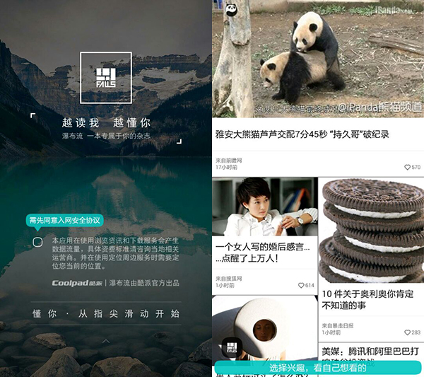 “瀑布流”作为酷派产品专属的杂志应用,也为大神F1极速版提供了一个颇为有趣的资讯获取渠道,通过板块式的布局让我们认识了熊猫界的“持久哥”。