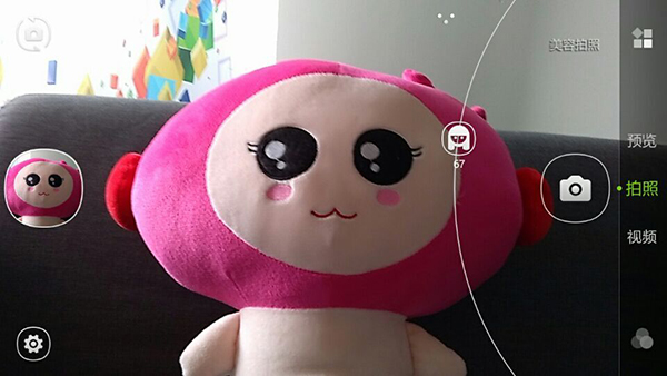 而在前置摄像头的玩法上,除了500万的像素配置远超红米2前置200万像素等竞争产品,大神F1极速版还再次在此基础上加入了“美容拍照”模式,从实际使用情况看,效果显著,滑动调节美颜指数的操作形式同样让操作直观易懂。