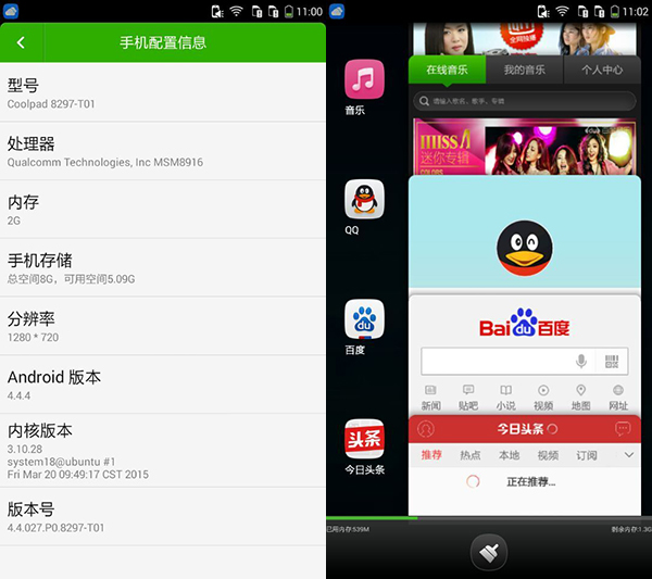 当然,最引人注意的还是大神F1极速版在同价位上“罕见”的2GB RAM “大内存”。硬件层面,大神F1极速版搭载高通MSM8916处理器,8GB内部存储空间,2GB的RAM容量在开启10个常用程序之后依然空余1.3GB左右,面对多任务显得游刃有余,相比红米2中1GB RAM开机之后仅仅剩余约300MB的运行内存空间,大神F1极速版可谓领先巨大,一般使用情况下比竞品多出超过1GB的可用RAM让后台程序“自杀”的概率降到最低,可以充分体现出Android系统多任务的优势。