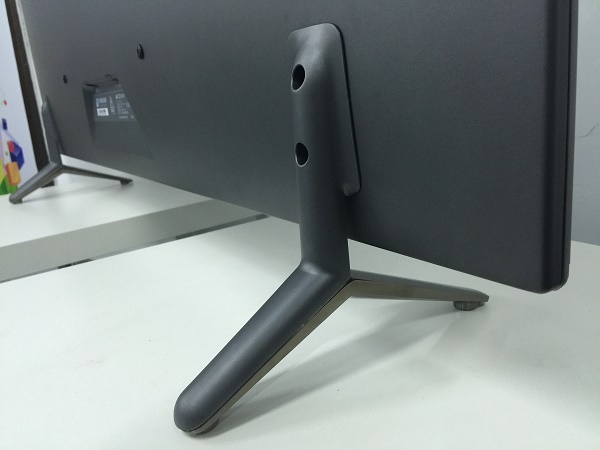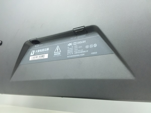 大麦电视D55s的金属背板设计简洁到了极致,接近一体成型没有任何明显的接口裸露,四个螺丝孔位的目的是考虑到墙壁吊挂安装。