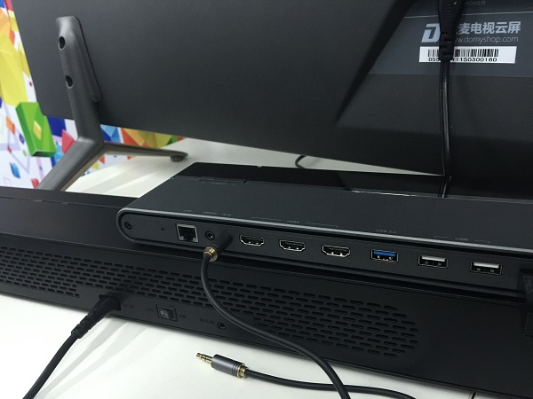 强调分体式设计的大麦电视,配件丰富同样是产品的一大亮点,分量十足的音响单元长度甚至超过了55寸电视的高度。