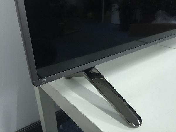 电视下方的站脚对外一侧采用了高亮的光滑表面处理,大麦电视的“D”字Logo被低调的设置在屏幕的左下方。