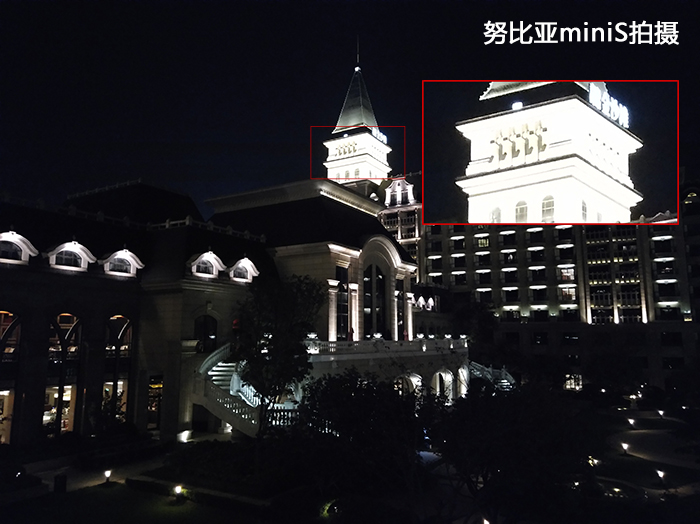 到了夜间暗光场景,努比亚miniS偏向于把照片拍得更亮,与iPhone 6s有所区别,较亮的画面虽然一定程度上影响了照片有光源部分的成像素质,但也让画面暗处的内容展现得更为丰富。
