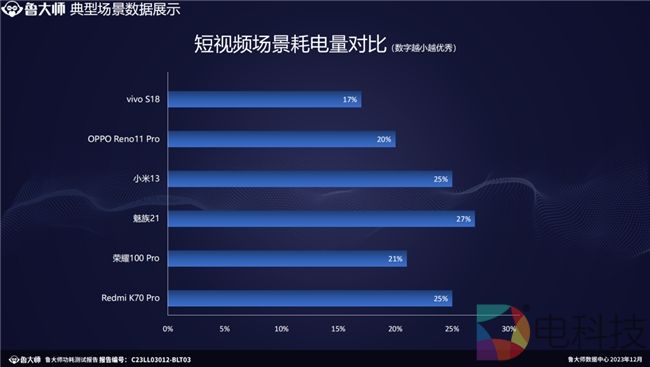 但是比较亮眼的是vivo S18的续航表现,在其余五部手机耗电量均超过20%的情况下,它将这一阶段的耗电量控制在了17%,是六部手机中耗电最少的。