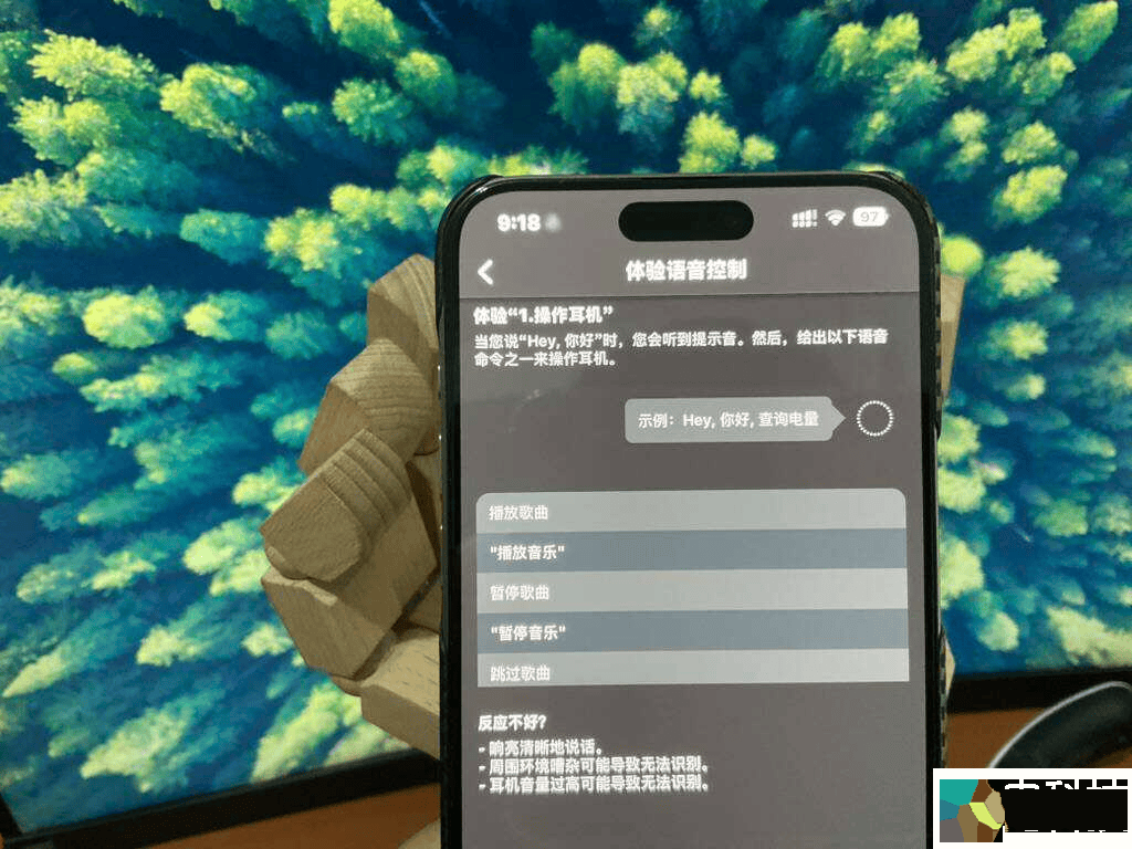 新搭载的语音控制功能成为了耳机的一大亮点。用户只需通过“Hey,你好”+语音命令,如“播放音乐”、“暂停音乐”等预设的语音指令,即可轻松实现多种操作,无需手动操作手机或耳机,真正实现了解放双手。