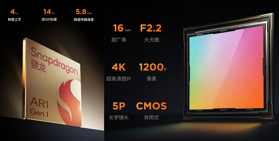 得益于骁龙AR1芯片带来的计算处理能力,以及正面这颗1200万像素的索尼IMX681传感器所带来的视觉能力,斗战者G1可以更好的帮助用户记录日常生活。
