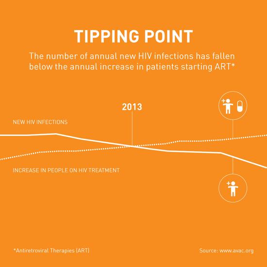 全世界都在为那些HIV感染者提供治疗。但多年以来,我们却始终落后,原因在于,尽管我们为很多人提供了治疗,但还是比不上这种病毒的新增感染人数。但形势似乎发生了逆转。本月披露的最新数据显示,2013年获得治疗的艾滋病人,多于新感染HIV的人数。这项数据为何重要?因为治疗不仅能保住更多人的生命,还能大幅降低他们传染他人的概率。正如流行病学家所说,我们可以逐步减少这种疾病的传播。在彻底消灭艾滋病之前,我们仍然任重道远,但这的确是一大突破。