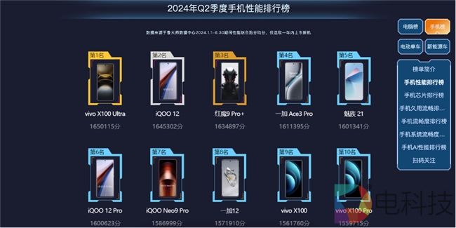 2024年Q2的手机性能榜,毫无意外的依旧是骁龙8 Gen3和天玑9300终端的天下,但是和Q1相比,性能旗舰和电竞手机的迎来了新对手,影像旗舰反而在性能表现上更胜一筹,榜首的vivo X100 Ultra就是如此。