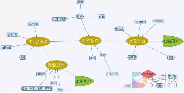 综合目前了解的情况,我们简单画了个产业链图。后面分别从工具设备、行业应用、内容制作、分发平台、相关服务几个方面具体介绍。