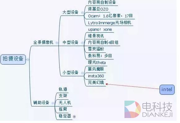 全景拍摄设备是今年一个新的发力点。拍摄全景主要方式是多摄像头拍摄和拼接,在 VR 视频出现前,一些拍摄全景的团队已经有不少相关技术积累。目前专业的全景拍摄设备还不完全成熟,不少公司也自制了相应设备,也出现一些创业公司专注于全景拍摄设备。遗憾的是,还没见到传统的拍摄设备巨头:佳能,尼康,索尼推出相应设备。