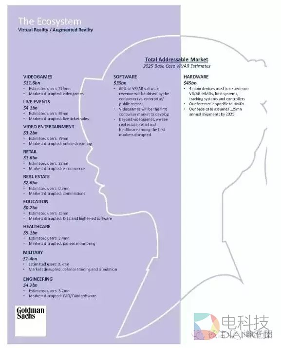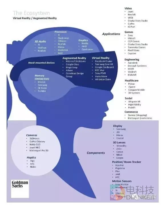硬件创新遇到技术瓶颈,芯片摩尔定律越来越不灵了,于是为了找出路,如今包括Facebook、Alphabet(谷歌公司)、微软、索尼、三星、intel、高通、NVIDIA、AMD等几乎所有IT业巨头都在向虚拟现实领域发力。这意味VR设备的出现成为激活行业的金钥匙。从上游芯片、面板厂商,到中间设备制造商,再到下游内容、服务提供商都享有大好前景。 VR将带给厂商一个全新的IT市场,也将带给用户一个触手可及的全新世界。