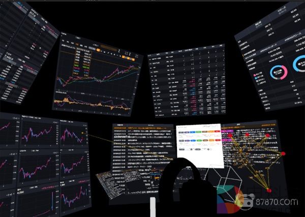 VR-STATION可用于在VR空间中创建交易室,允许显示交易股票中涉及的例如股票价格图表和新闻滚动条等所有信息,而无需担心物理空间的限制。