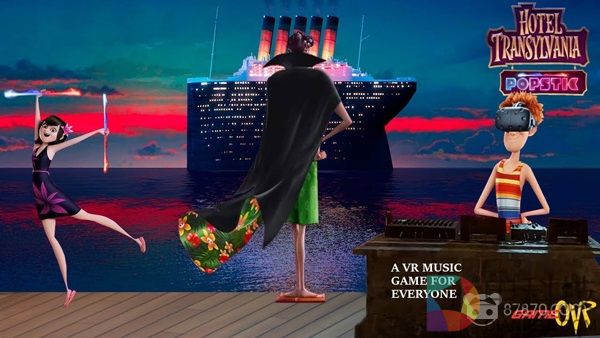 《精灵旅社Popstic(Hotel Transylvania Popstic)》是由索尼电影公司与沉浸式内容工作室Specular Theory合作开发的VR节奏游戏,改编自索尼影视动画旗下广受欢迎的《精灵旅社3:疯狂假期》。进入游戏后,玩家可以在德古拉、梅维斯和乔尼中选择一个角色,并从该角色的播放列表中选择歌曲。在一个名为Stic的VR外设帮助下,击打目标或者躲避障碍。