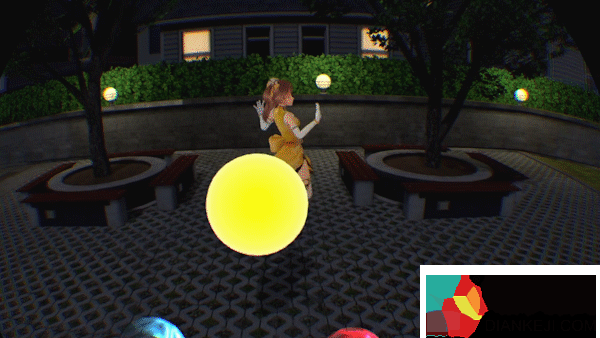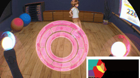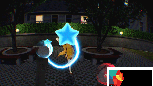舞蹈练习就是我们比较常见的音舞游戏的模式,和大名鼎鼎的《音盾》比较类似,都是掉落音符,玩家按住扳机去触碰相应的颜色即可。这部分的目的是让玩家提前熟悉歌曲的谱面以及游戏的操作方式。音符有四种形式: