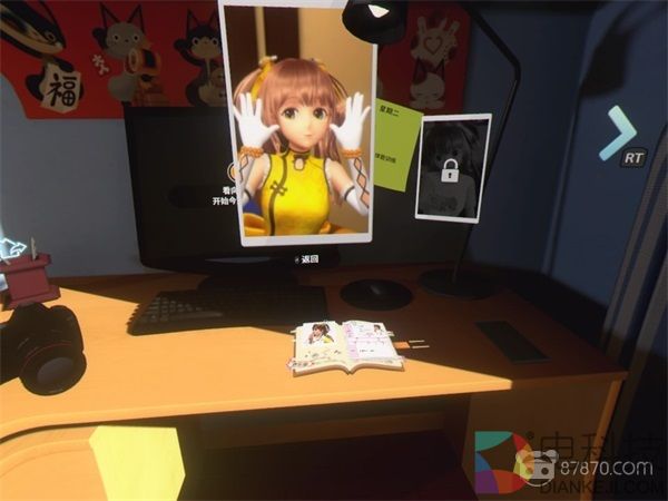 此外和传统的养成类游戏相似,《全民舞姬》同样引入了收集和行程系统。但与PC上用鼠标点击图标相比,VR中更具沉浸感。《全民舞姬》的游戏中,玩家可以打开手账查看艺人的行程安排,或者在相机中翻看唐乐瑜的“照片”,不仅满足了玩家的收集癖,逼真的系统还给玩家带来了更强的仪式感。
