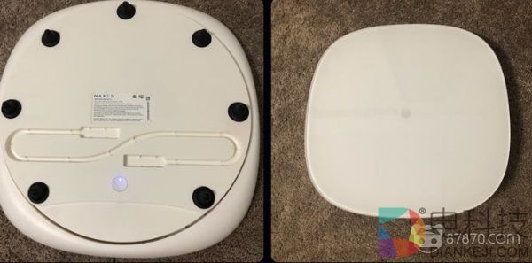 旋转秤初始状态大约有30%的电量,但Naked Labs建议在首次使用前先将秤充电一小时。
