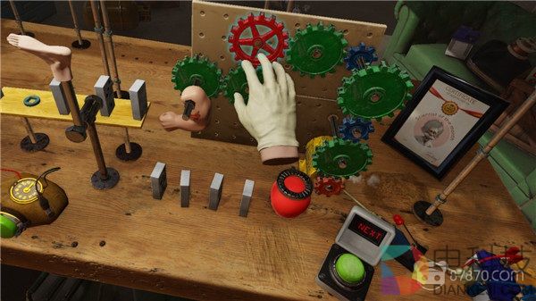 和这个系列以往的作品类似,《Crazy Machines VR》依旧保持了“用各种稀奇古怪的部件搭建匪夷所思的机关来实现结构连锁”的基本特色;不同之处在于,这次的搭建工作不再需要利用鼠标和键盘,取而代之的是VR体感控制手柄——可想而知,这下代入感和沉浸感可要比之前那些旧作强太多啦!