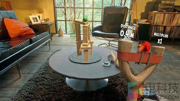 而与手机或者PC上最大的不同之处在于:在AR中,玩家是以第一人称视角进行游戏,更像是真的在玩“弹弓”一样。虽然玩法相似,但在AR平台上重温经典给我们带来了一些意料之外的惊喜: