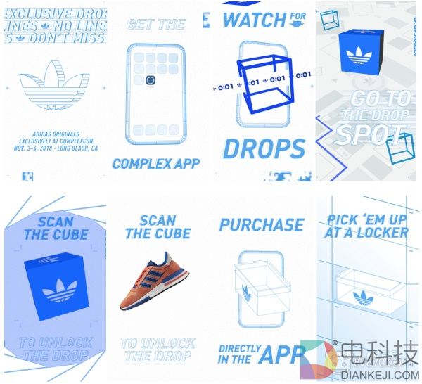 要加入这次购物体验,顾客必须安装ComplexCon应用程序才能访问adidas Originals AR商店,顾客将通过APP收到定期通知,说明所购商品的“解锁”位置。